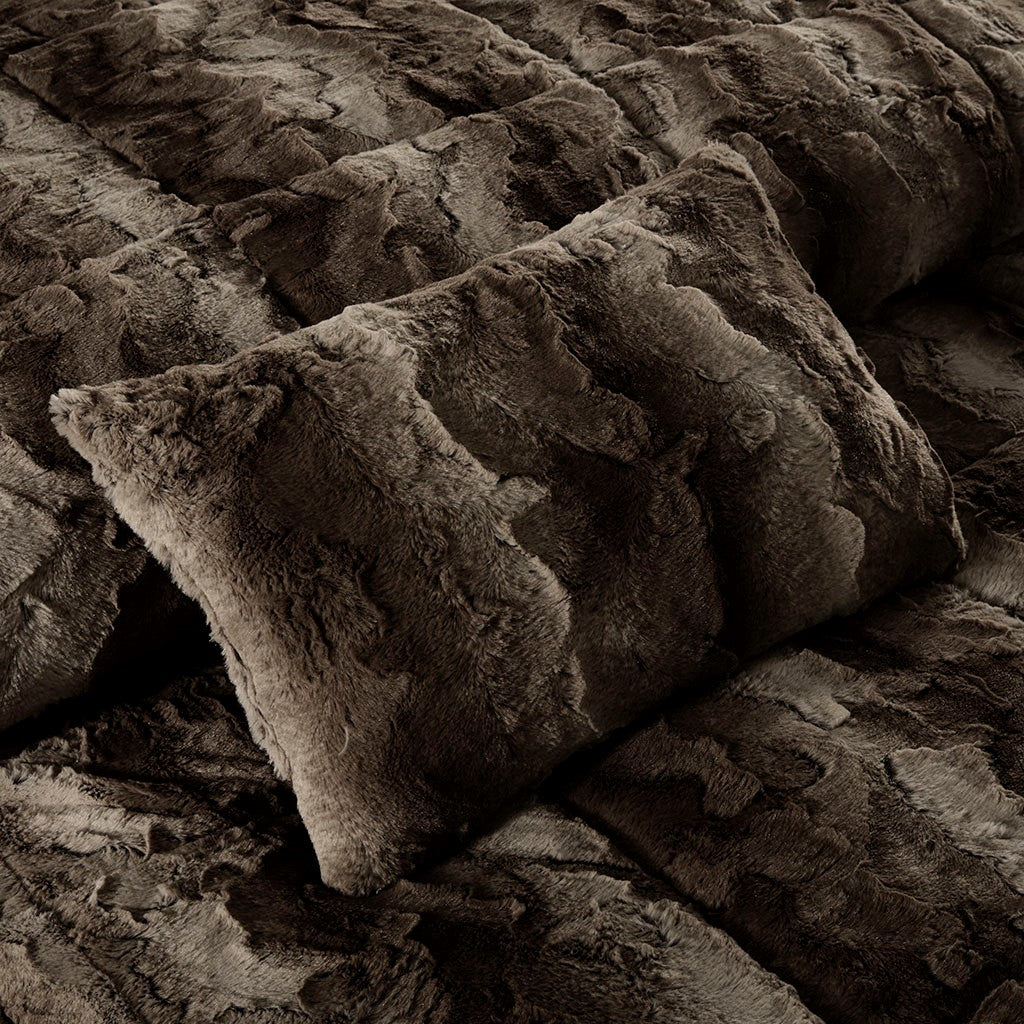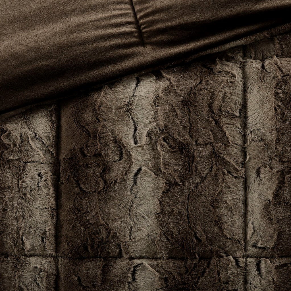 Zuri 4 Piece Faux Fur Comforter Set - Brown - Full Size / Queen Size
