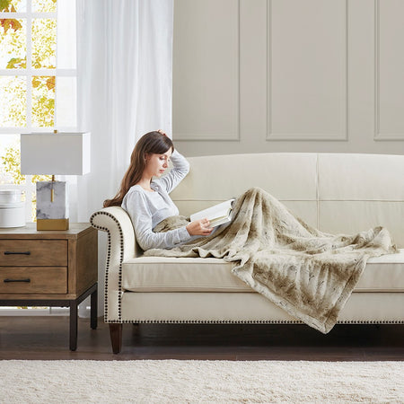 The Madison Park Zuri oversized throw features a luxuriously soft faux fur and reverses to a solid faux mink. This faux fur throw is the perfect modern update and adds a glamorous accent to your home. This throw is machine washable for easy care and OEKO-TEX certified, meaning it does not contain any harmful substances or chemicals to ensure quality comfort and wellness. Items in the set may come in a rolled or compressed packaging, which will need to be fluffed up or steam ironed before use to remove wrinkles.