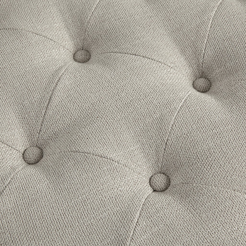 - Farmhouse style tufted back 48 inch accent ottoman in linen upholstery
