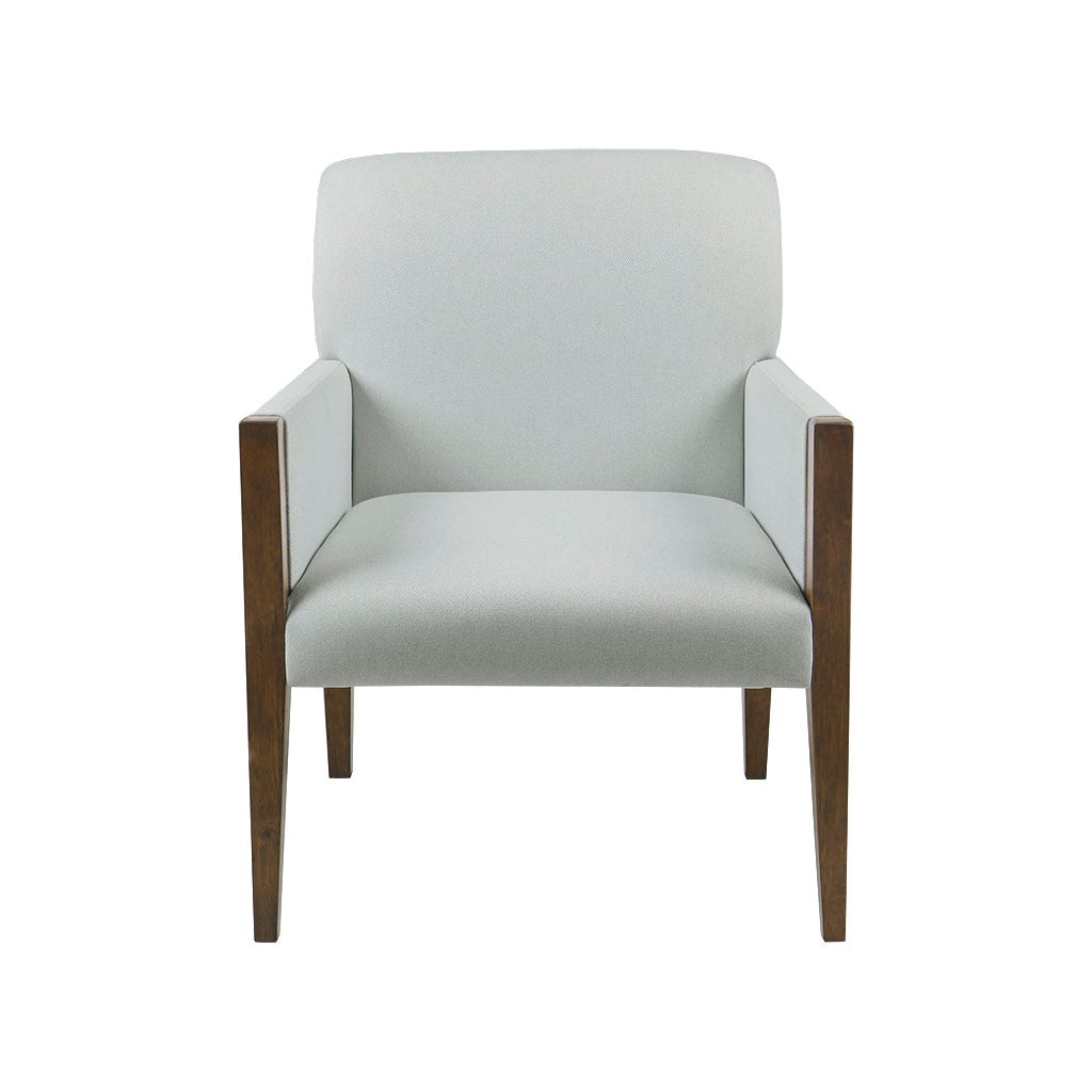 Taking inspiration from her home in New York City, the Martha Stewart Remo Accent Chair reflects the modern beauty instilled in the Perry Street collection. This accent chair features track arms to create a sink-in seat with a padded back and seat cushion for exceptional comfort. The exposed, solid wood legs add an elegant contrast to the upholstery and create clean lines that highlight the contemporary design. Perfect for your living room or home office, this upholstered accent chair elevates your home decor with that iconic Martha Stewart charm. Assembly is required.