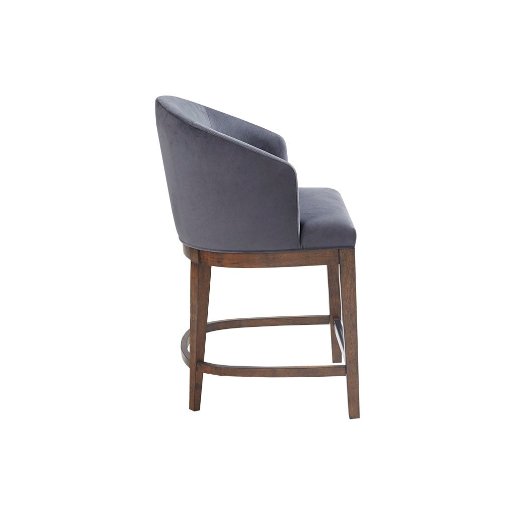 The Martha Stewart Wheaton 25" Upholstered Counter Stool offers a simple and sophisticated update to your dining decor. Showcasing a silhouette, this counter stool features an upholstered seat and back to create a comfortable and stylish look. The solid wood base, with its walnut finish, complements the upholstery and the metal kick plate on the footrest protects against every day wear and tear. This upholstered counter stool provides both comfort and style to elevate your dining room or kitchen space. Assembly required and a tool is included.