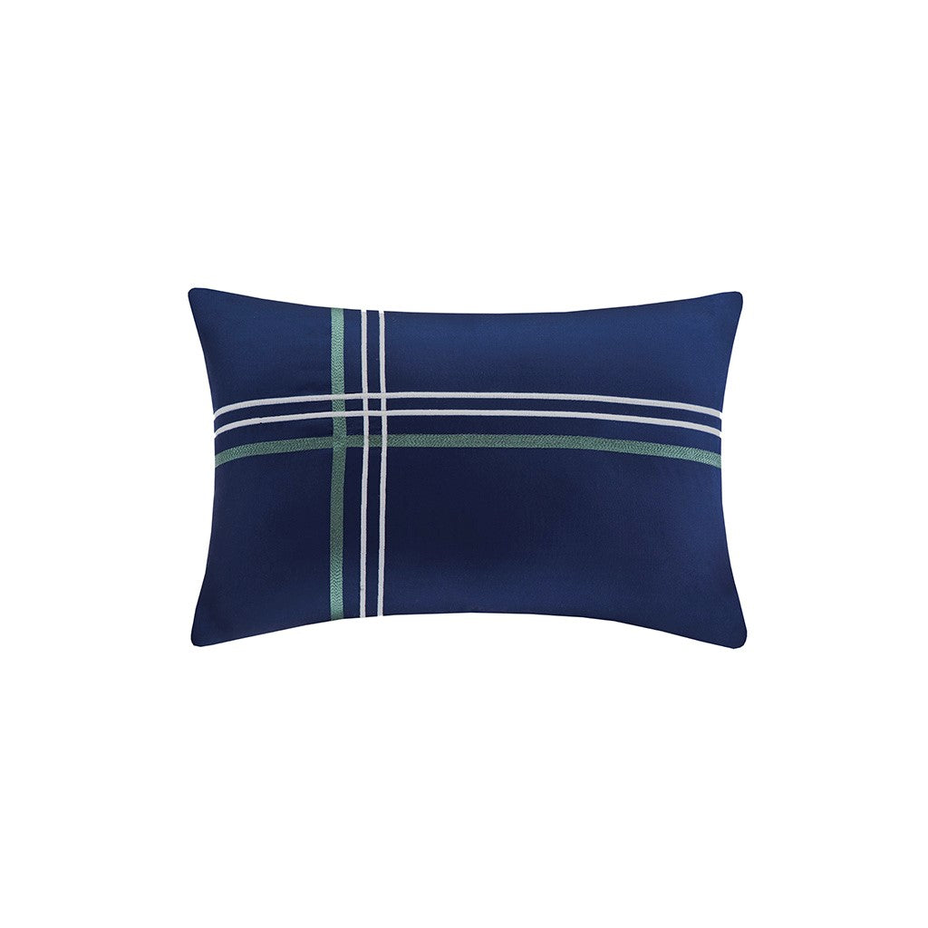 Add a sophisticated style to your bedroom with the Mi Zone Brody Reversible Coverlet Set. This coverlet and 2 shams (1 in Twin/TwinXL) features a blue and green plaid pattern with a solid blue reverse, creating a handsome cabin-inspired look. The quilted filling is pre-washed cotton for maximum comfort and durability. Completing this plaid coverlet is 1 oblong decorative pillow that pairs perfectly with the top of the bed. Machine washable for easy care, this reversible coverlet set uses an antimicrobial treatment that provides built-in freshness protection, reducing the growth of odor causing bacteria to keep fabric lasting longer. Items in the set may come in a rolled or compressed packaging, which will need to be fluffed up or steam ironed before use to remove wrinkles.
