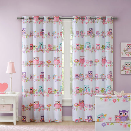 With colorful owls and blossoming flowers, our Wise Wendy Blackout Window Panel is the perfect touch to lighten up your little one's room! Featuring a heavy 3 pass foamback blackout liner, this panel is energy efficient, noise reducing, thermal insulated, and provides added privacy. Grommet top finish makes it easier to hang, open, and close panels through out the day; fits up to 1.25" diameter rod. Complete the look with coordinating bed set and valance, sold separately.