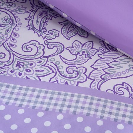 - Brighten your room with this polka dot, paisley and floral printed comforter set in purple, grey, and white colors