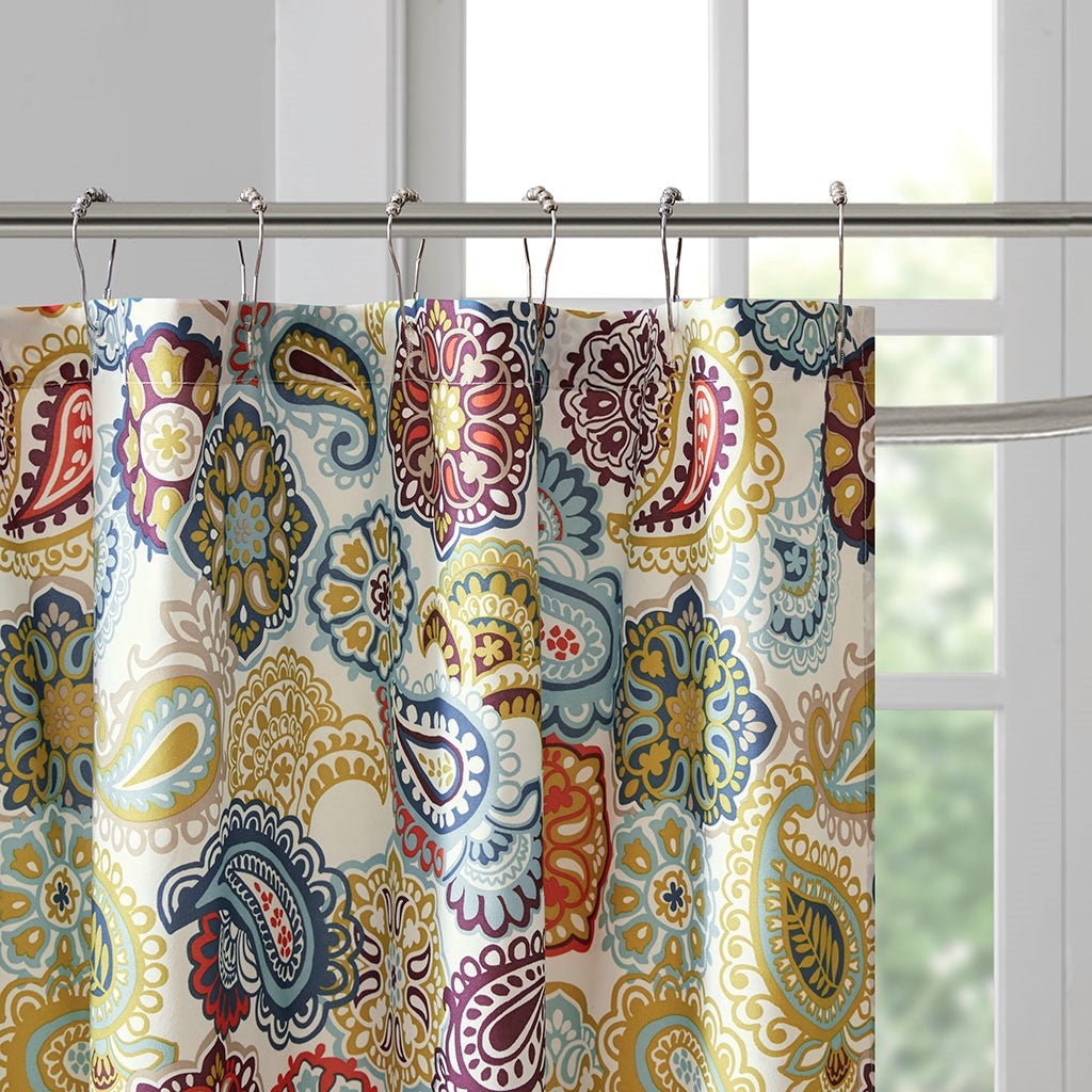 Spice up your bathroom with the Tamil shower curtain. Tamil offers a fresh look to the contemporary paisley pattern with an eclectic mix of colorful florals and medallions. This 72x72" shower curtain is made from a polyester microfiber fabrication for easy care.
