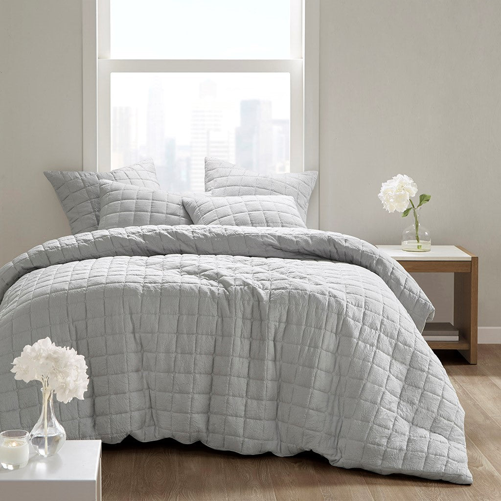 Cocoon 3 Piece Quilt Top Comforter Mini Set - Grey - King Size / Cal King Size