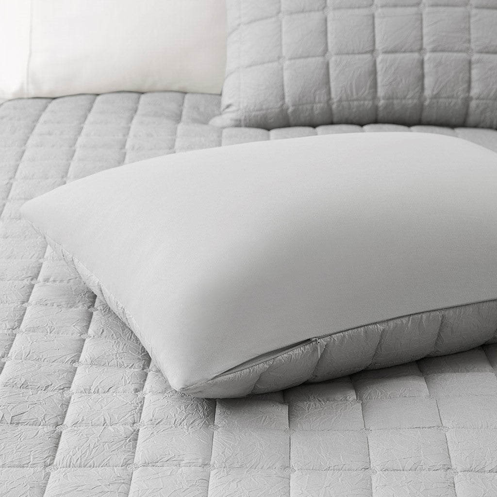 The simple elegance of the Cocoon 3 Piece Quilt Top Duvet Cover Mini Set by N Natori brings an elevated update to your bedroom. The oversized duvet cover flaunts super soft crushed microfiber with a lofty over-quilted box pattern, for a modern look. The 2 pillow shams pair beautifully with the duvet cover to complete the luxurious bedding set. Complete the look with the coodinating bedding accessories - Cocoon Euro shams that are sold separately. Machine washable for easy care, this oversized solid duvet cover easily covers high depth mattresses and provides a fresh and clean addition to your bedroom decor. A button closure allows you to place a padded insert within the duvet cover and inside corner ties prevent it from shifting (insert is NOT included). Pair this look up with N Natori Soho Geo bedding collection for more loft.