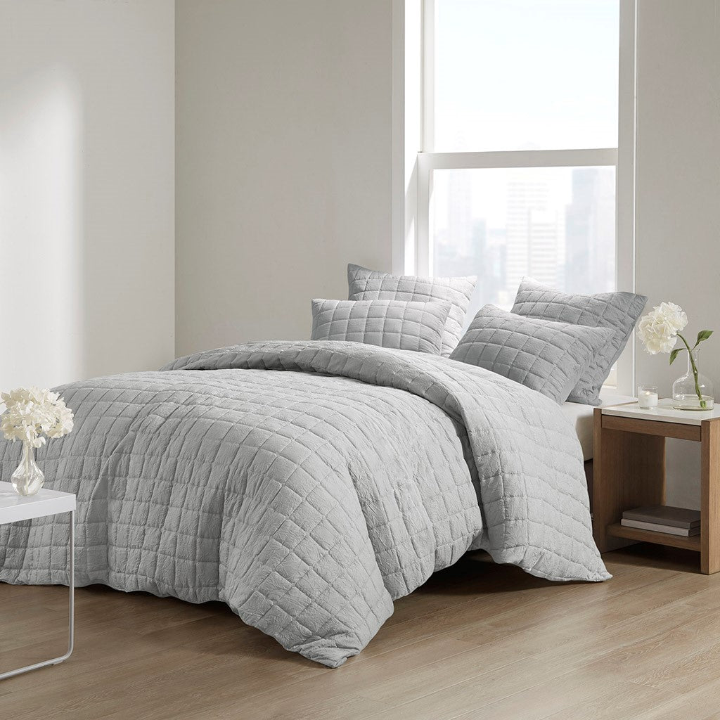 Cocoon 3 Piece Quilt Top Duvet Cover Mini Set - Grey - Full Size / Queen Size