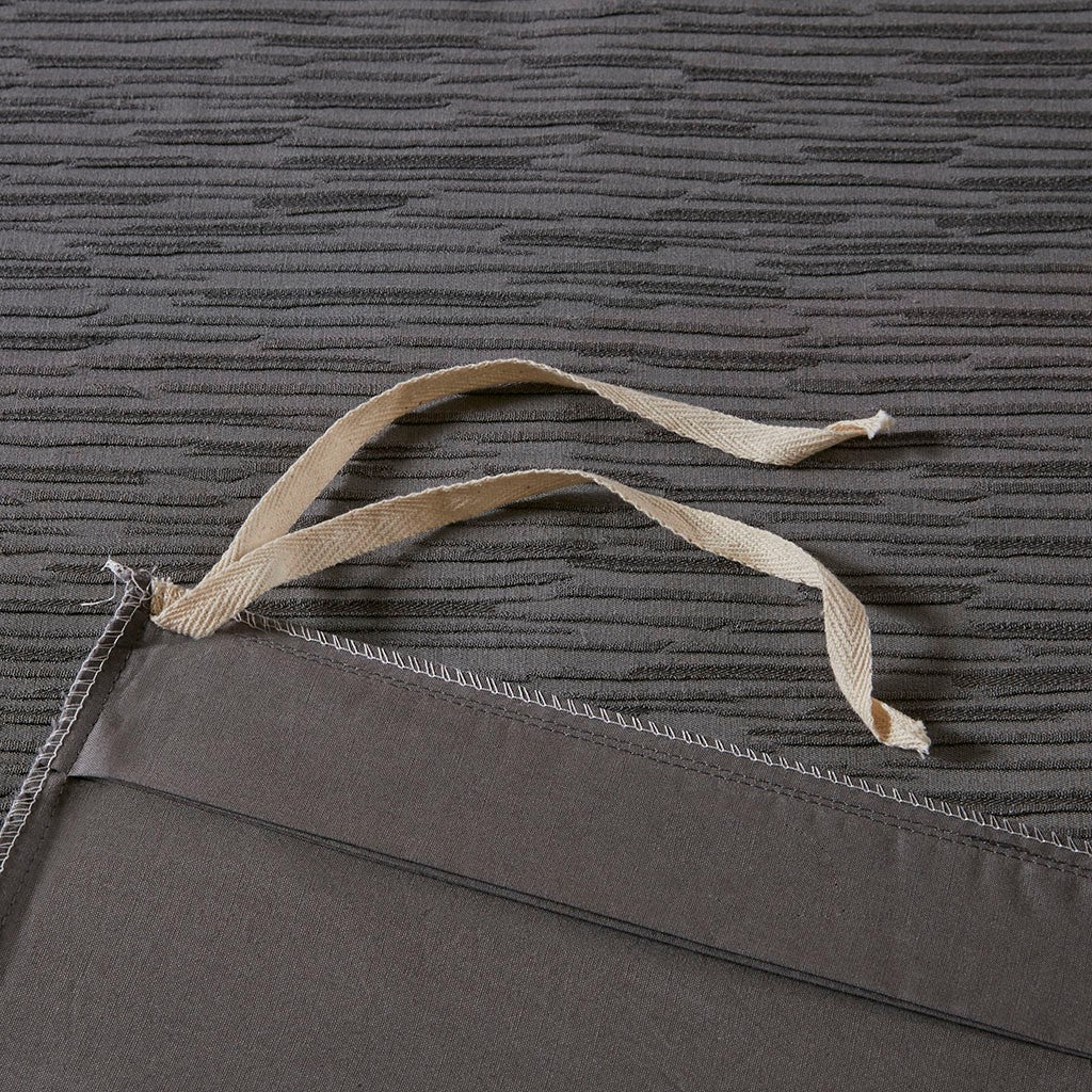 Express your unique style with yarn dyed textural appeal of the N Natori Hanae 3 Piece Duvet Cover Set. The oversized grey duvet cover flaunts a textured fabric that adds dimension to the top of the bed and creates a cottage-inspired allure. Two matching shams feature a textured face with a solid reverse to pair beautifully with the duvet cover, completing the luxurious bedding set. With a fine attention to detail, this duvet cover set provides a glamorous update for your bedroom and is machine washable for easy care. Button closures allow you to place a comforter insert within the duvet cover and hidden tie-backs on the corners help prevent it from shifting (insert not included). Complete the look with the coodinating Hanae bedding accessories - Euro shams and decorative pillows that are sold separately.