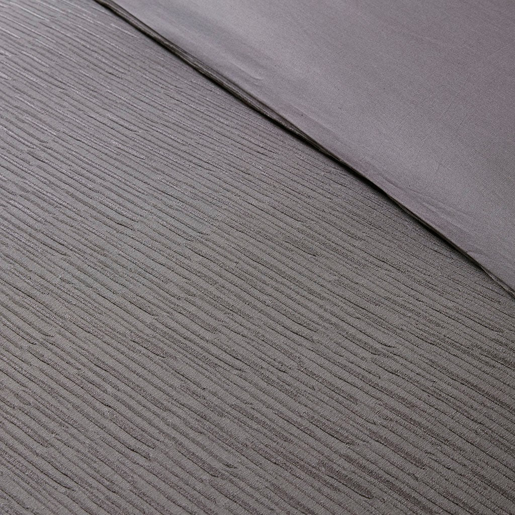 Hanae Cotton Blend Yarn Dyed 3 Piece Duvet Cover Set - Grey - King Size