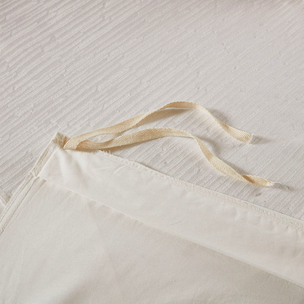 Express your unique style with yarn dyed textural appeal of the N Natori Hanae 3 Piece Duvet Cover Set. The oversized eggshell white duvet cover flaunts a textured fabric that adds dimension to the top of the bed and creates a cottage-inspired allure. Two matching shams feature a textured face with a solid reverse to pair beautifully with the duvet cover, completing the luxurious bedding set. With a fine attention to detail, this duvet cover set provides a glamorous update for your bedroom and is machine washable for easy care. Button closures allow you to place a comforter insert within the duvet cover and hidden tie-backs on the corners help prevent it from shifting (insert not included). Complete the look with the coodinating Hanae bedding accessories - Euro shams and decorative pillows that are sold separately.