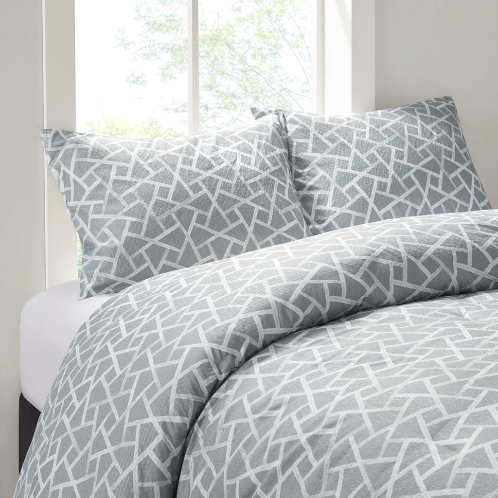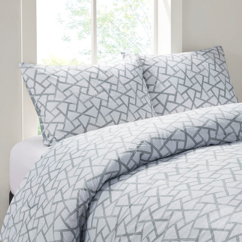 Soho Geo 3 Piece Reversible Duvet Cover Mini Set - Grey / White - King Size / Cal King Size
