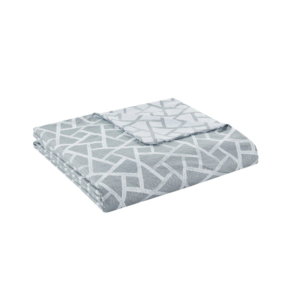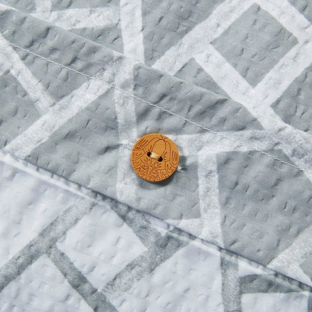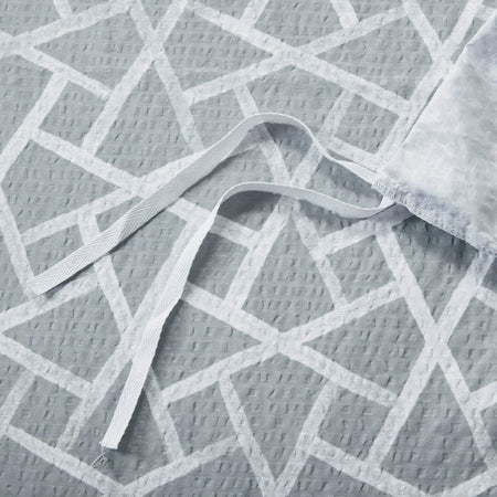 Elevate your bedroom with the simple elegance of the Soho Geo 3 Piece Reversible Duvet Cover Mini Set by N Natori. This reversible duvet cover flaunts a geometric pattern, in grey and white, printed on seersucker heatsetting fabric for a casual modern look. The reverse features the same pattern as the face of the duvet cover, but flips the color scheme to give you 2 contemporary designs for the price of one. Also included are 2 matching reversible shams to complete the luxury bedding set. Machine washable for easy care, this reversible duvet cover set is oversized to provide better coverage for high depth mattresses. Pair this look up with N Natori Cocoon bedding collection for more loft.