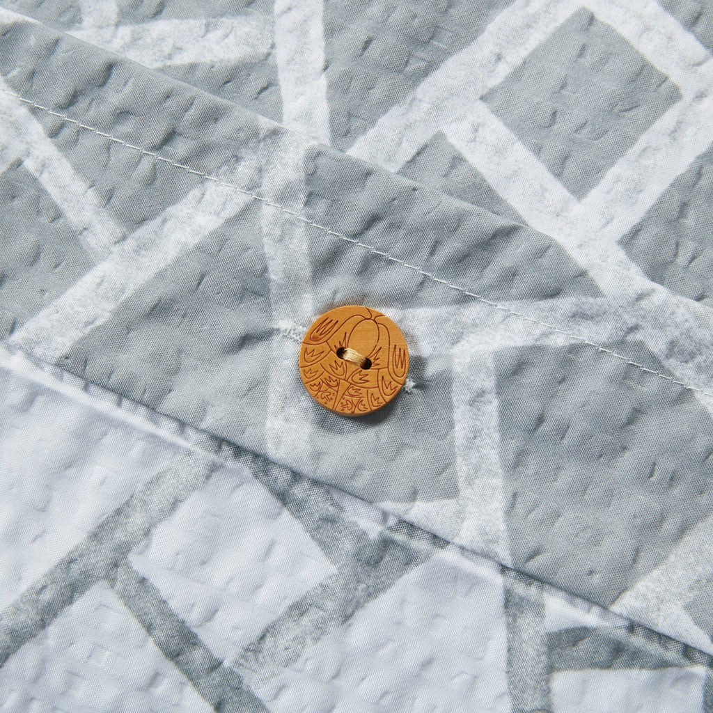 - Geometric pattern printed on seersucker fabric for more dimensional stability