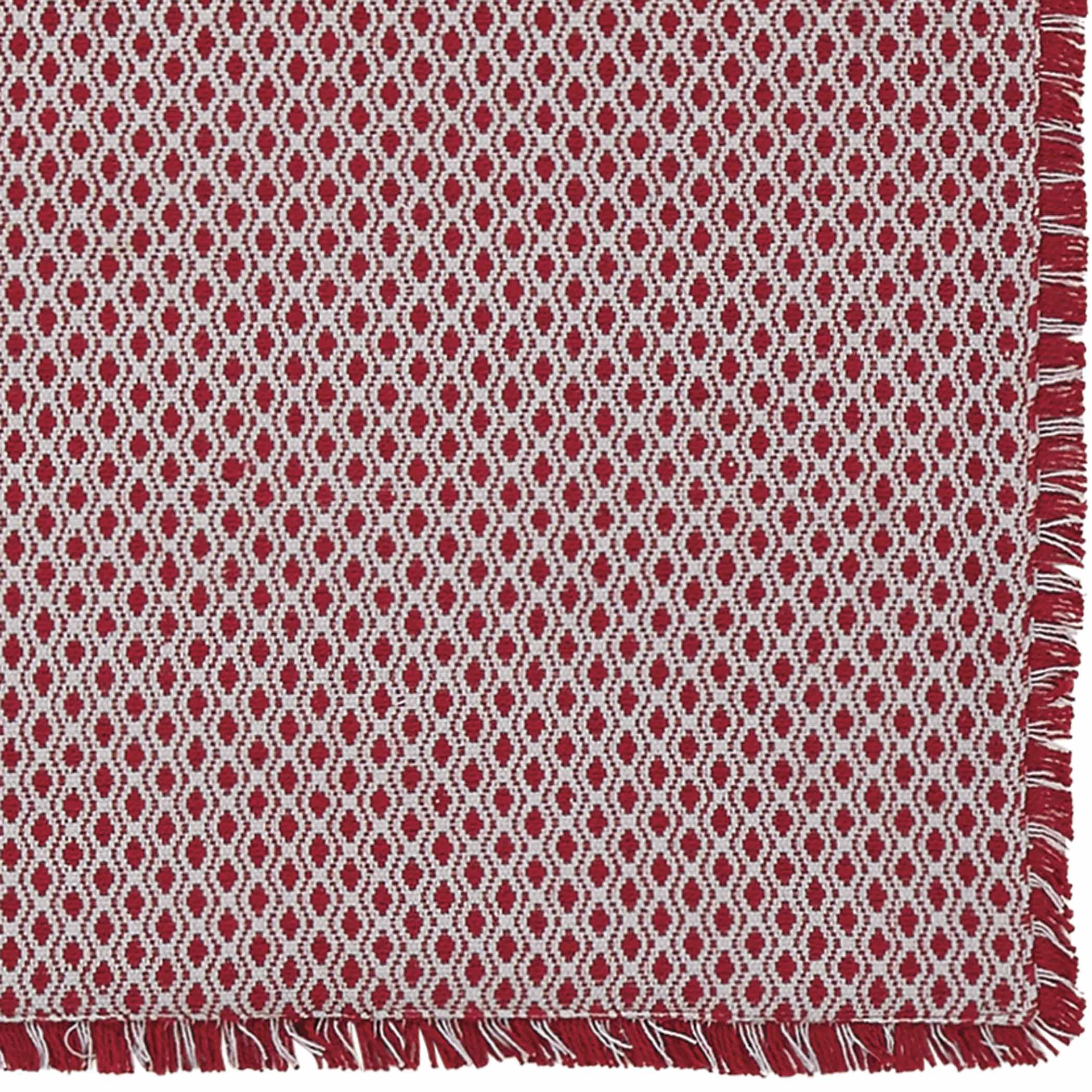 Get festive with farmhouse style. Our Tannen Table Runner will set off your holiday table decor and give you the down-home feel of a country Christmas. The natural burlap base features red diagonal pattern and fringed edges. Looks great on the dining room table, the coffee table, or the mantlepiece.