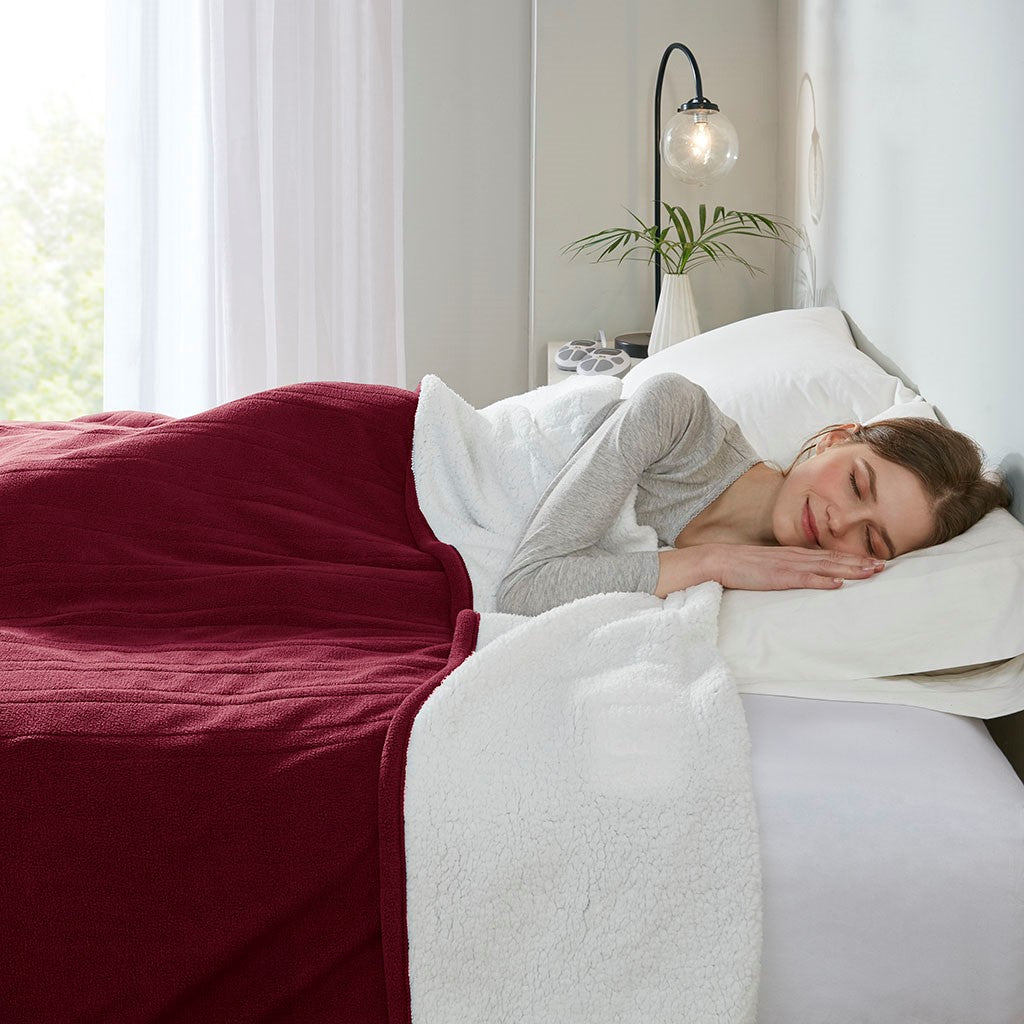 Fleece to Sherpa Heated Blanket - Burgundy - Queen Size