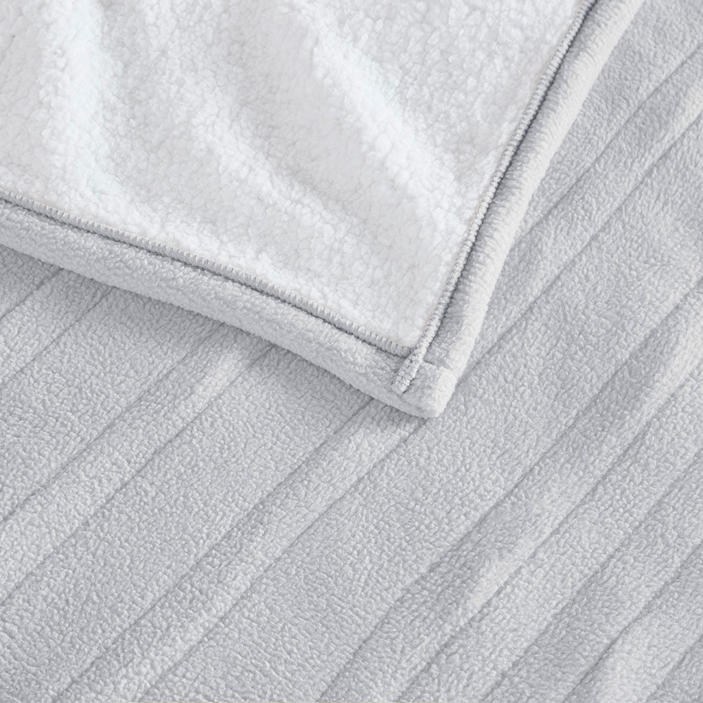 Fleece to Sherpa Heated Blanket - Light Grey - Queen Size
