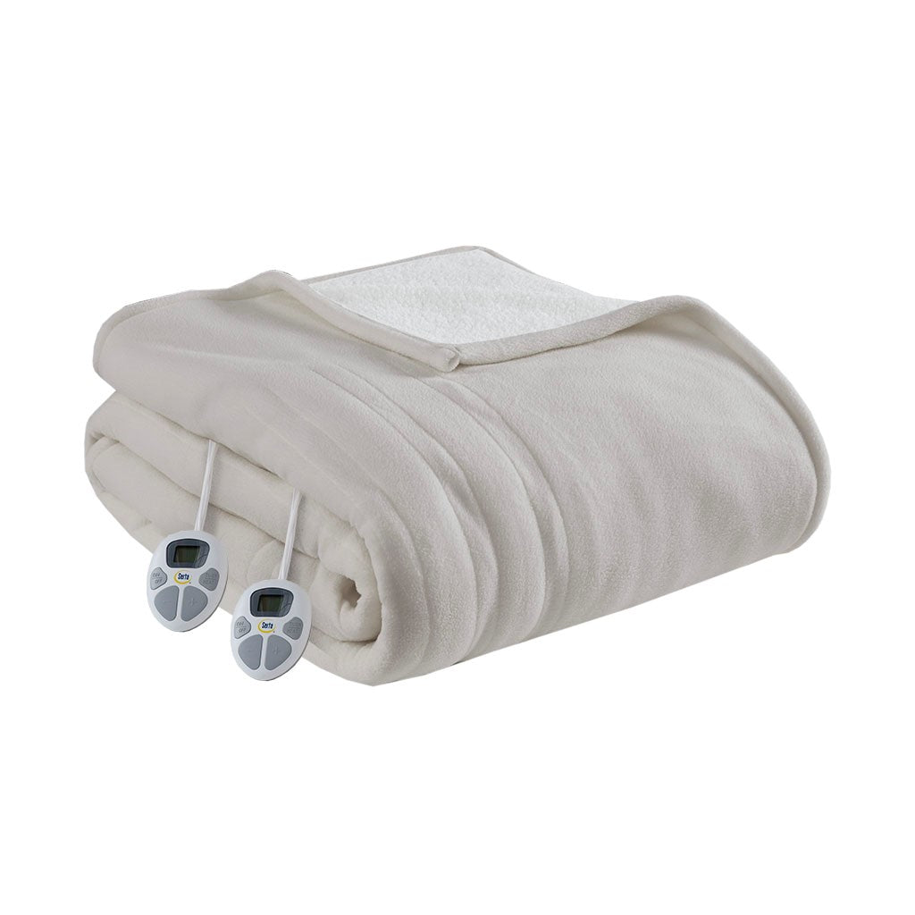 The Serta Fleece to Sherpa Heated Blanket offers incredible comfort and warmth to keep you extra cozy in bed. This heated blanket features an ultra-soft fleece face with a cozy Sherpa reverse, for extra comfort. A controller with 10 heat settings provides the perfect amount of warmth, while the 1-12 hour automatic shut-off timer helps ensure your safety. Machine washable for easy care, this heated blanket brings cozy comfort and a cottage style update to your space. Twin and Full size have one controller, Queen and King size have 2 controllers. Includes manufacturer's 5-year warranty.