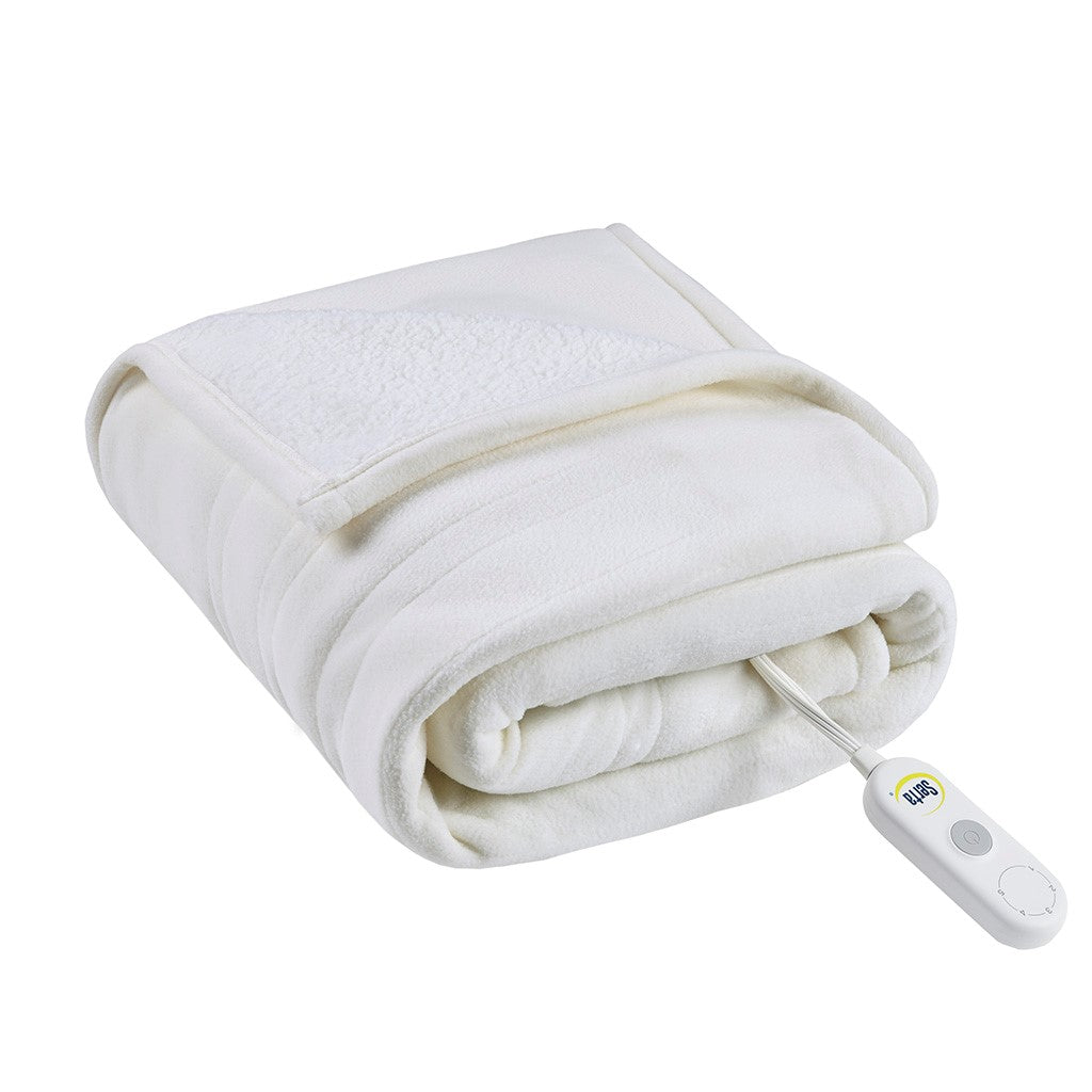 Fleece to Sherpa Heated Throw - Ivory - 50x60"