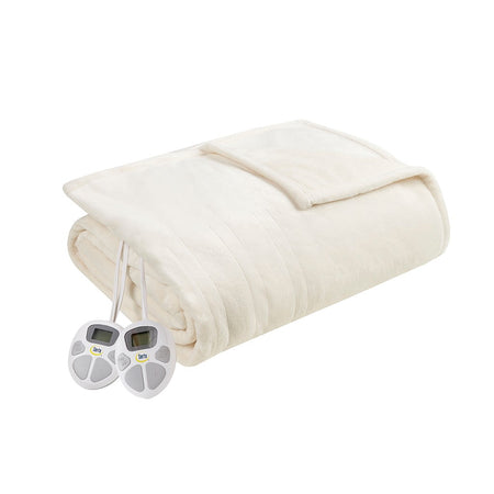 Plush Heated Blanket - Ivory - Twin Size