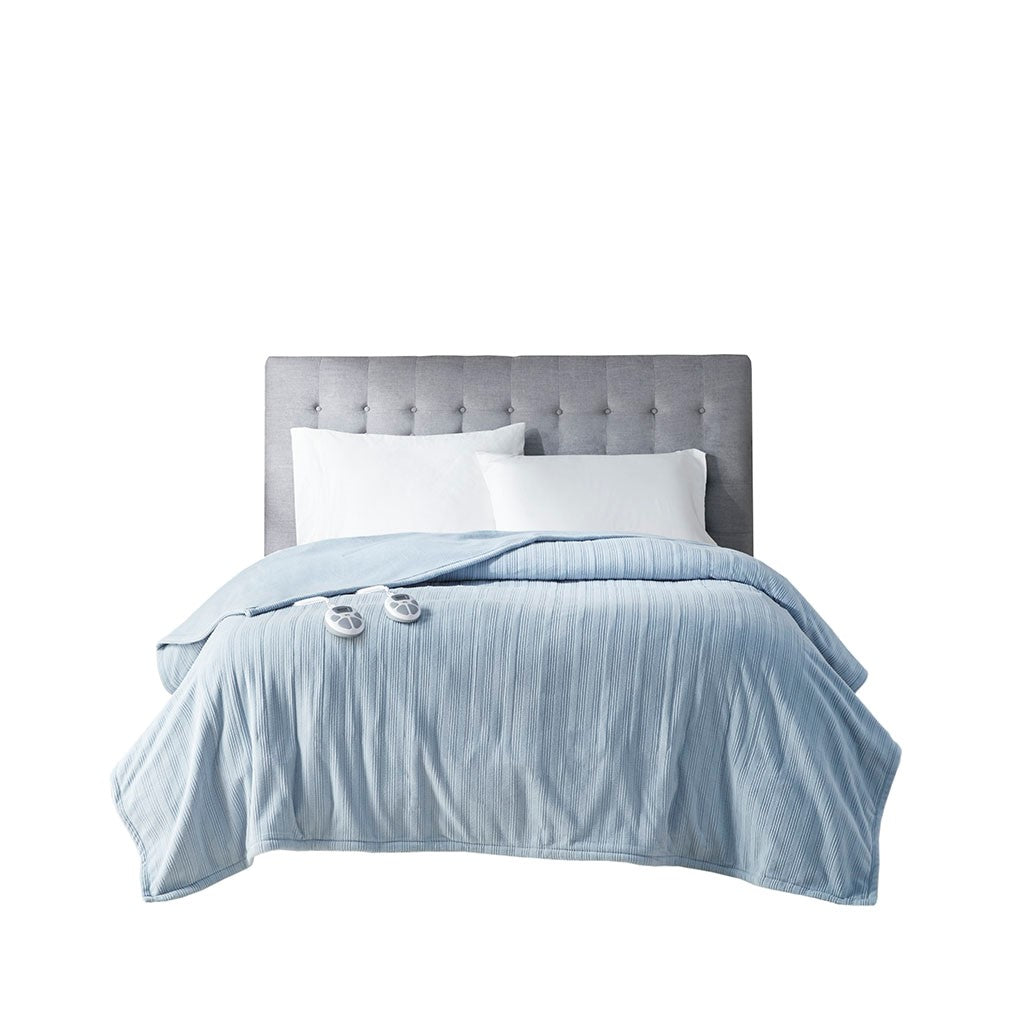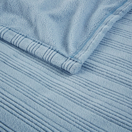 Ribbed Micro Fleece Heated Blanket - Blue - King Size