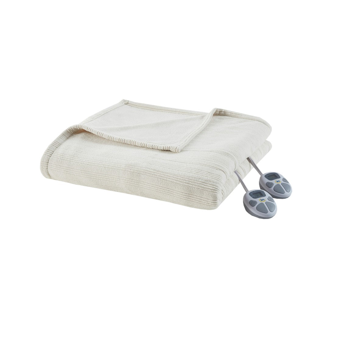 Ribbed Micro Fleece Heated Blanket - Ivory - Full Size