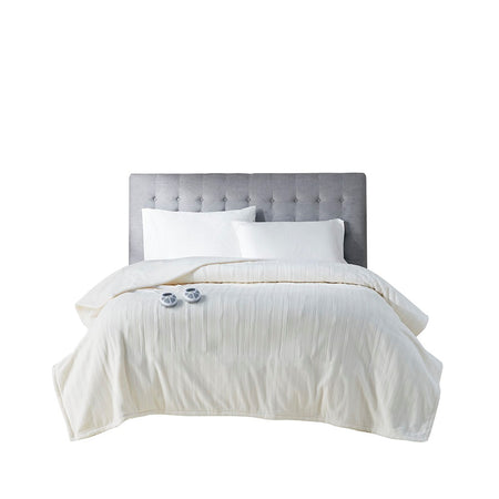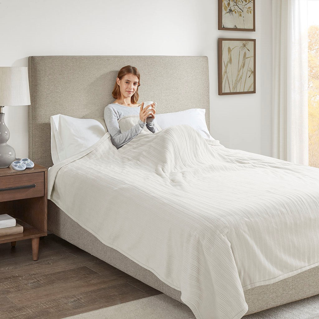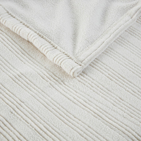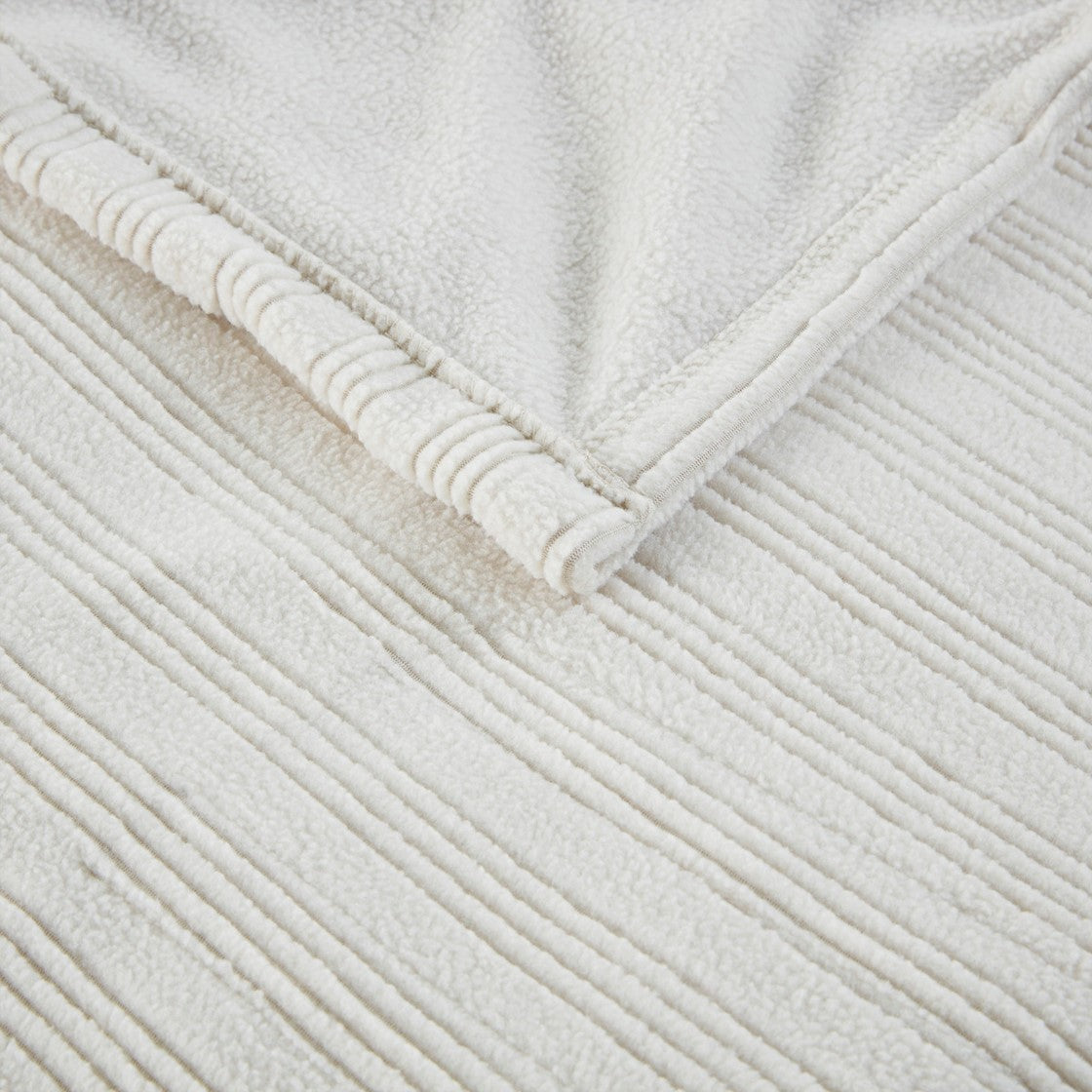 Ribbed Micro Fleece Heated Blanket - Ivory - Twin Size
