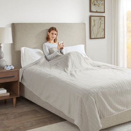 Wrap yourself up in the incredibly soft comfort of the Serta Ribbed Micro Fleece Heated Blanket. This heated blanket is made from ultra-soft fleece and features a single controller with 10 heat settings to provide the perfect comfort and warmth (2 controllers for Queen and King size). A 1 to 12 hour auto shutoff timer helps to ensure your safety during prolonged use. Machine washable for easy care, this heated fleece blanket brings an added layer of cozy comfort and warmth to your bed that's great for cold winter nights.