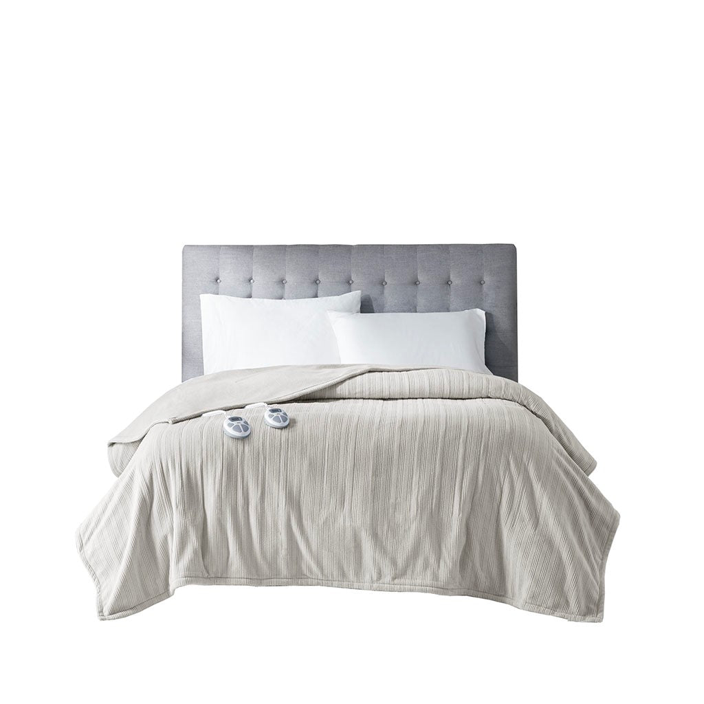 Ribbed Micro Fleece Heated Blanket - Tan - Twin Size