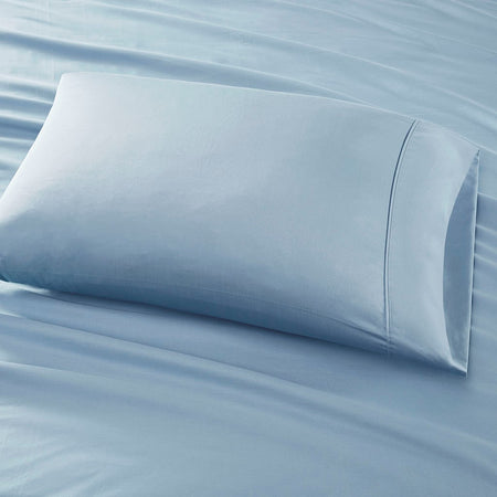 Experience the luxurious comfort of the Sleep Philosophy 300TC Liquid Cotton Sheet Set. This solid cotton sheet set is made from the finest mercerized 100% cotton to create an incredibly rich look and silky feel to elevate your bedroom. These 300 thread count sheets are woven using single pick insertion that results in a high quality sheet that has the feel and sheen of silk, but with the buttery soft, moisture absorbency of premium extra-long staple cotton. These sheets are also OEKO-TEX certified, meaning they do not contain any harmful substances or chemicals, ensuring quality comfort and wellness. Set includes: 1 Fitted Sheet, 1 Flat Sheet, and 2 Pillowcases.
