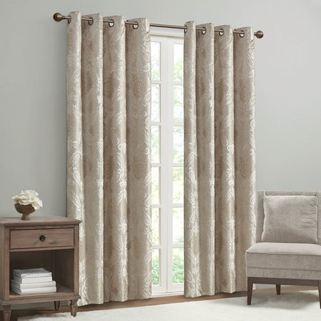 Amelia Knitted Jacquard Paisley Total Blackout Grommet Top Curtain Panel - Champagne - 84" Panel