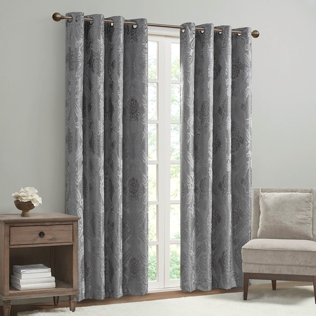 Amelia Knitted Jacquard Paisley Total Blackout Grommet Top Curtain Panel - Grey - 84" Panel