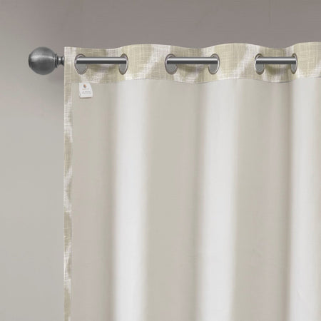 Introducing a modern and stylish take on energy efficiency, our SunSmart Blakesly Printed Ikat Blackout Panel is the perfect update to any room. Fresh and chic, this window panel features a printed taupe ikat design on a textured firm base fabric, creating dimension for a cool and casual look. Finished with a two pass foamback and bonding technique, the panel is enhanced to block most sunlight and create a significant barrier to reduce outside noise. Silver grommet top detail makes it easy to hang, open, and close panels throughout the day; while fitting up to a standard 1.25"Â diameter rod. With considerable energy savings and a high level of added privacy, this blackout panel is perfect for home offices, family rooms, and bedrooms. Give your space a beautiful, one-of-a-kind update with this contemporary blackout window panel. Lighting level: Heavily Shaded Ambiance.