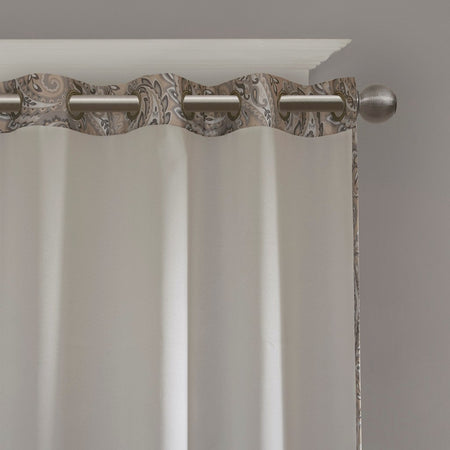 Our SunSmart Jenelle Paisley Printed Total Blackout Window Panel offers a stunning and stylish update to your home, while embracing simple functionality. This curtain features a beautiful paisley print in rich taupe hues, combined with a light sheen faux silk base fabric for an elegant and transitional look. An added full blackout lining blocks out all outside light and creates a maximum protective barrier against noise and intrusion to ensure the highest level of privacy. Using thermal technology, this window panel helps provide maximum energy saving by keeping your room cool or warm as needed. Grommet top makes this panel easy to hang, open, adn close thorugh the day. This 100% total blackout window panel is perfect for bedrooms, media rooms, or any private space, providing a lighting level of pitch black ambiance when fully closed. Fits up to a 1.25"Â diameter rod.