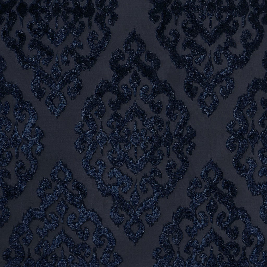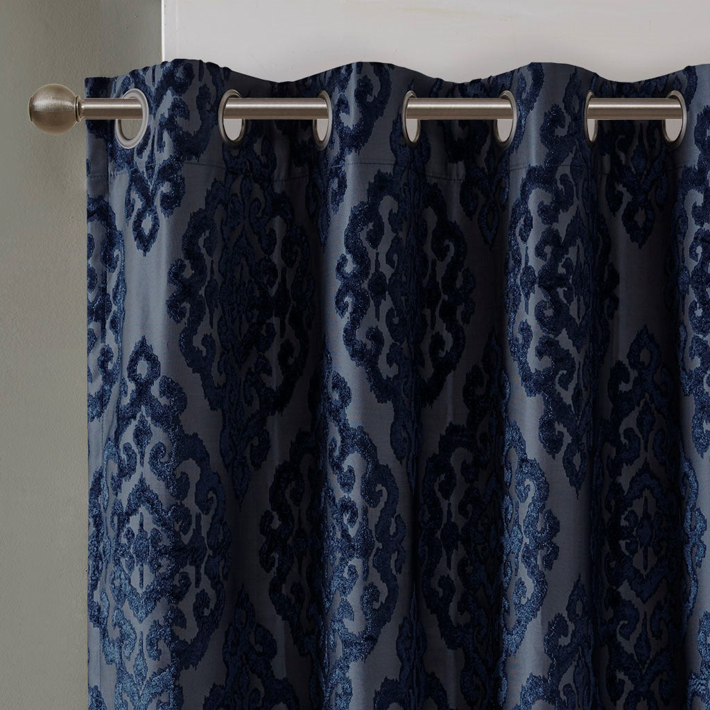 Mirage Knitted Jacquard Damask Total Blackout Grommet Top Curtain Panel - Navy - 108" Panel