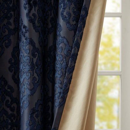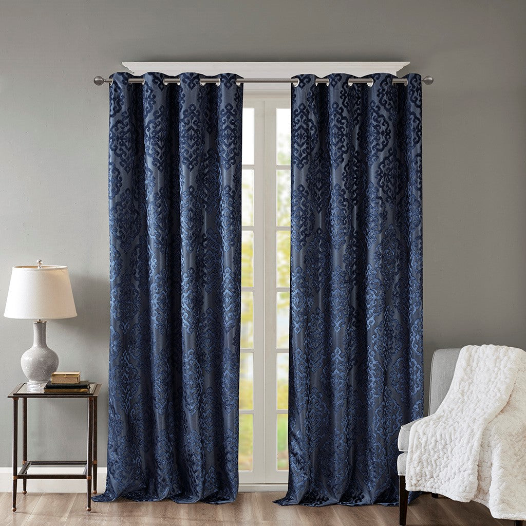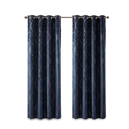 Mirage Knitted Jacquard Damask Total Blackout Grommet Top Curtain Panel - Navy - 95" Panel