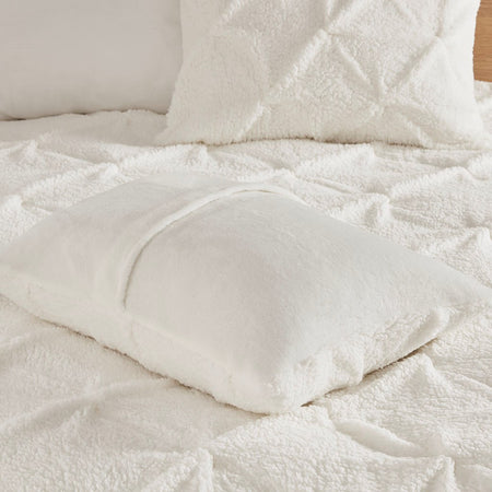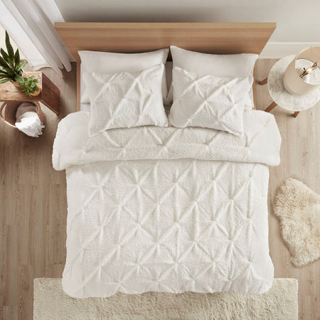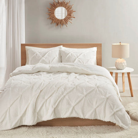 Addison Pintuck Sherpa Down Alternative Comforter Set - Ivory - Full Size / Queen Size