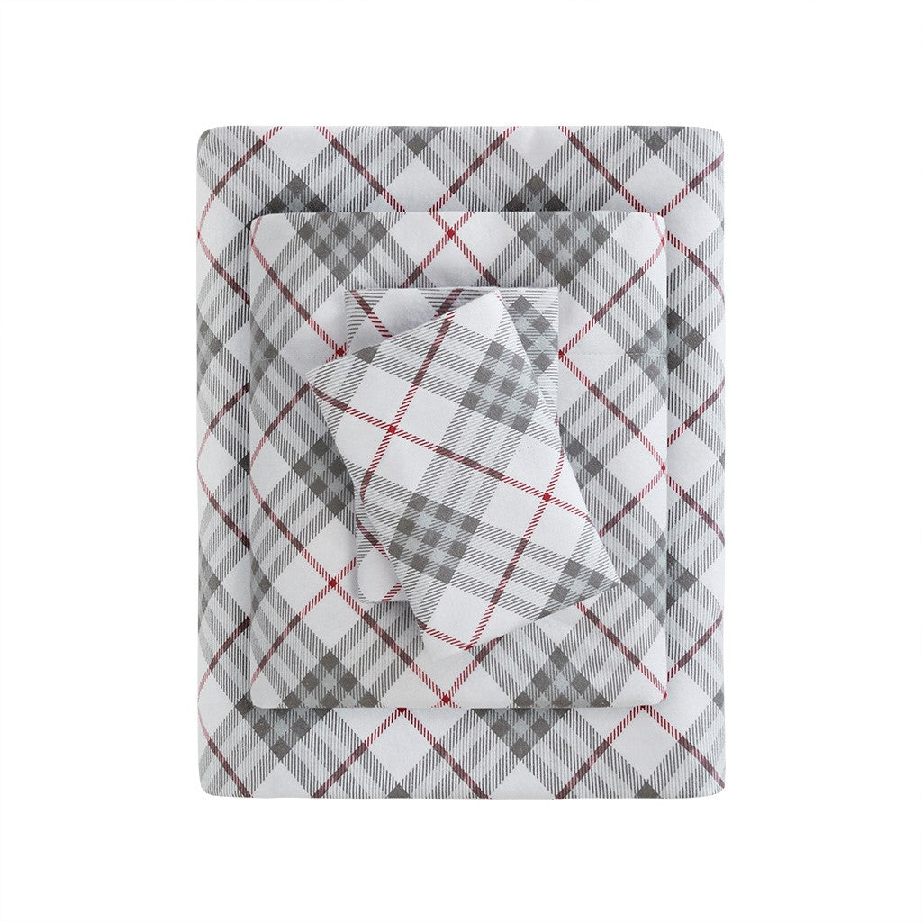 Cozy Cotton Flannel Printed Sheet Set - Red Plaid - Full Size