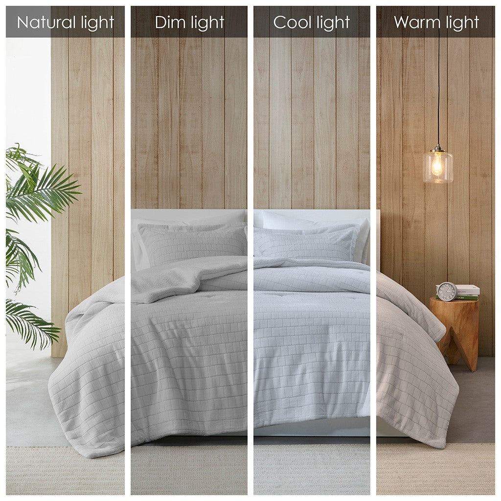 Laurie Plush to Sherpa Comforter Set - Grey - Full Size / Queen Size