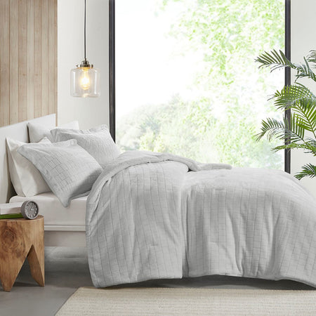 Sleep soundly in pure, plush comfort with the Laurie Plush to Sherpa Comforter Set. The soft, plush comforter flaunts a luxuriously textured pattern with a cozy Sherpa reverse and hypoallergenic down alternative filling to create a rich feel and comforting warmth. The 2 pillow shams (1 in Twin) with overlap openings on the reverse match the top of the bed to complete the glam look. Machine washable for easy care, this plush comforter set is OEKO-TEX certified, meaning it does not contain any harmful substances or chemicals to ensure quality comfort and wellness.