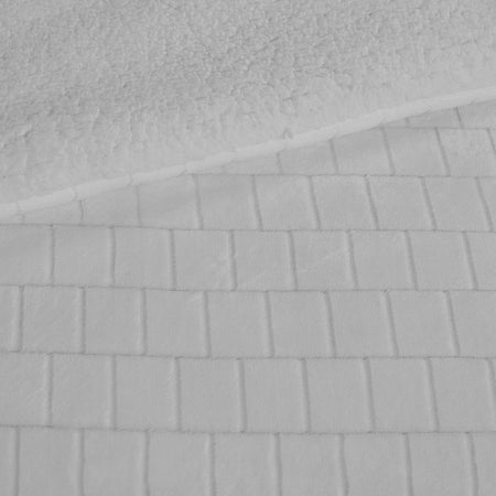 Comforter: Jacquard Velour to Sherpa, 100% polyester; Polyester Fiber filling, Jump Tack stitched with Knife Edge