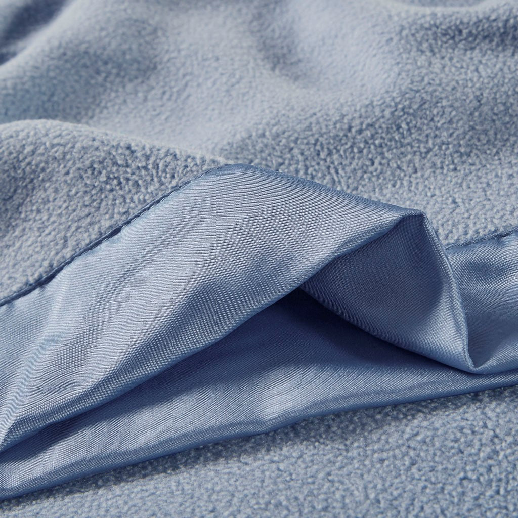 BODY: SOFT BRUSHED LIGHTWEIGHT MICRO FLEECE, 100% POLYESTER, ANTI-PILL, 2" MATTE SATIN 100% POLYESTER BINDING
