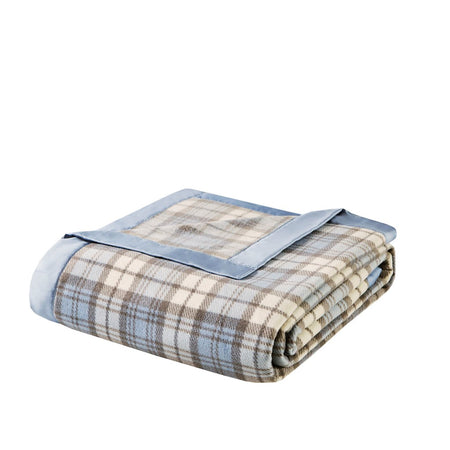 Micro Fleece Blanket - Blue Plaid - Full Size / Queen Size