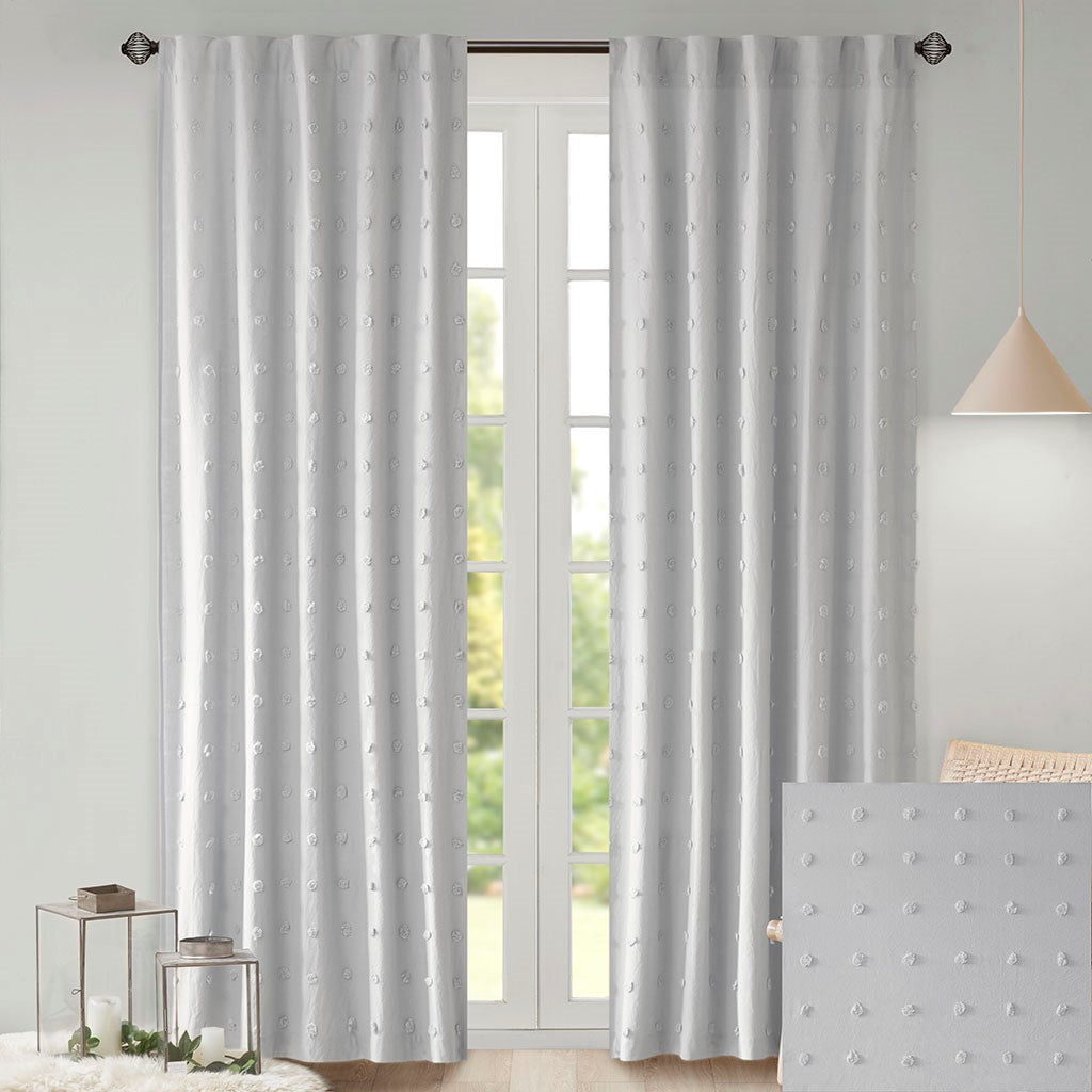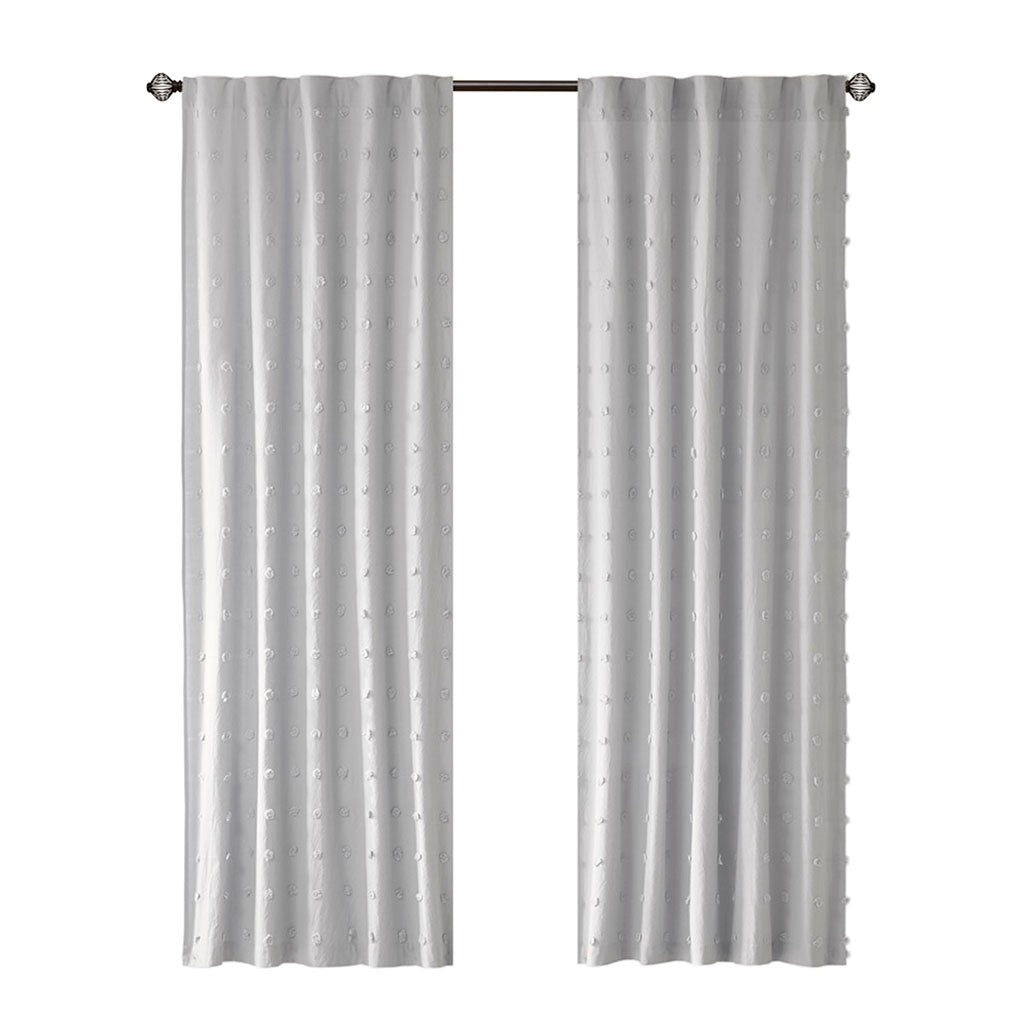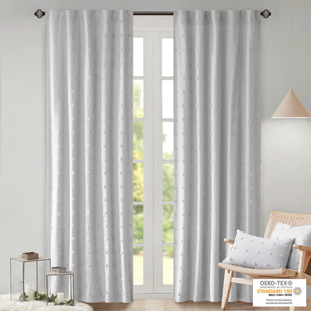 It's all in the details, with our cool and chic Urban Habitat Brooklyn Pom Pom window panel. This solid grey window panel features small all over pom pom tufts, creating a beautiful texture and fresh tonal pattern. This window panel is also OEKO-TEX certified, meaning it does not contain any harmful substances or chemicals, ensuring quality comfort and wellness. While the 100% cotton fabric provides a natural touch for a casual and modern update. Finished with a rod pocket and back tab top finish; Fits up to 1.25" diameter rod. Complete the set with coordinate valance, pillows, and bedding - available and sold separately