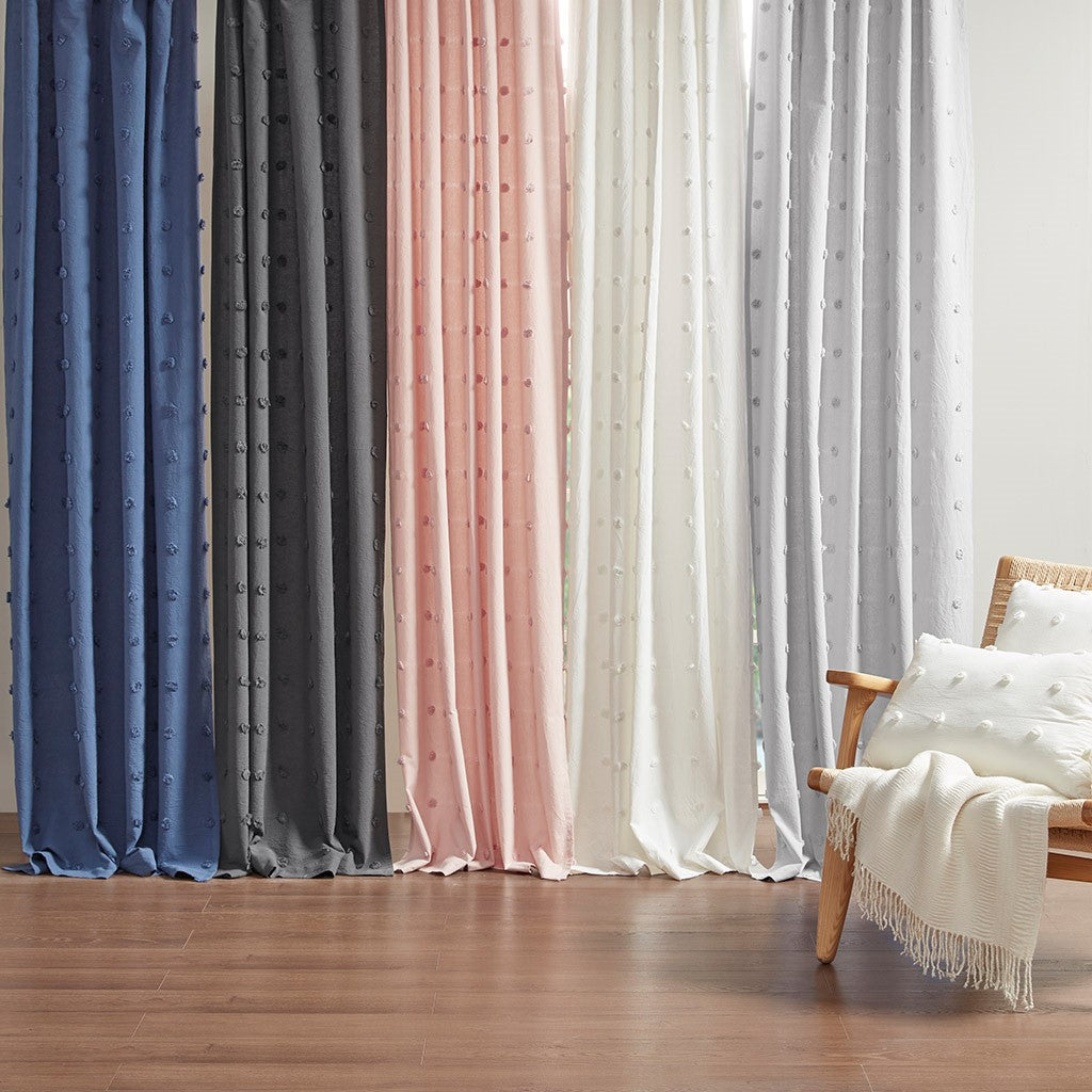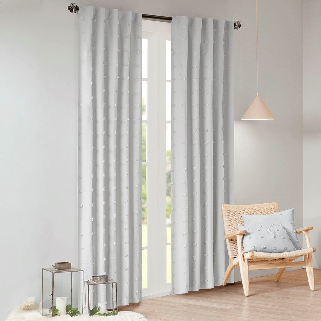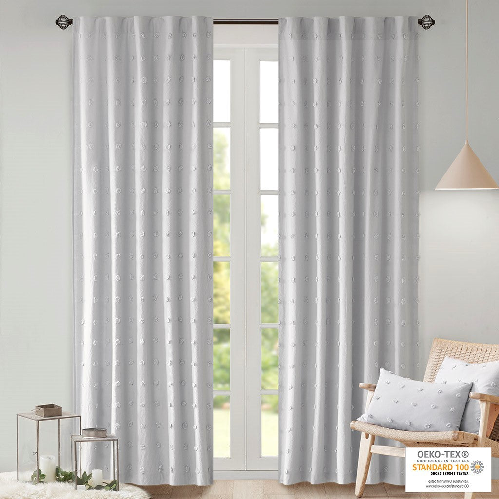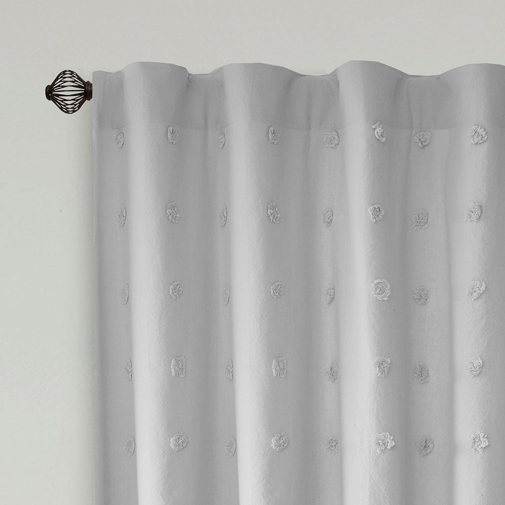 It's all in the details, with our cool and chic Urban Habitat Brooklyn Pom Pom window panel. This solid grey window panel features small all over pom pom tufts, creating a beautiful texture and fresh tonal pattern. This window panel is also OEKO-TEX certified, meaning it does not contain any harmful substances or chemicals, ensuring quality comfort and wellness. While the 100% cotton fabric provides a natural touch for a casual and modern update. Finished with a rod pocket and back tab top finish; Fits up to 1.25" diameter rod. Complete the set with coordinate valance, pillows, and bedding - available and sold separately