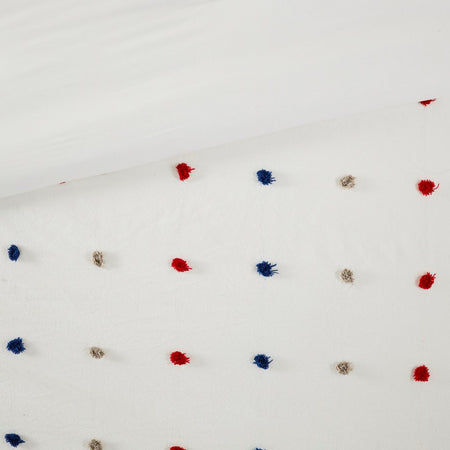 Callie Cotton Jacquard Pom Pom Comforter Set - Red / Navy - Twin Size