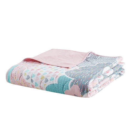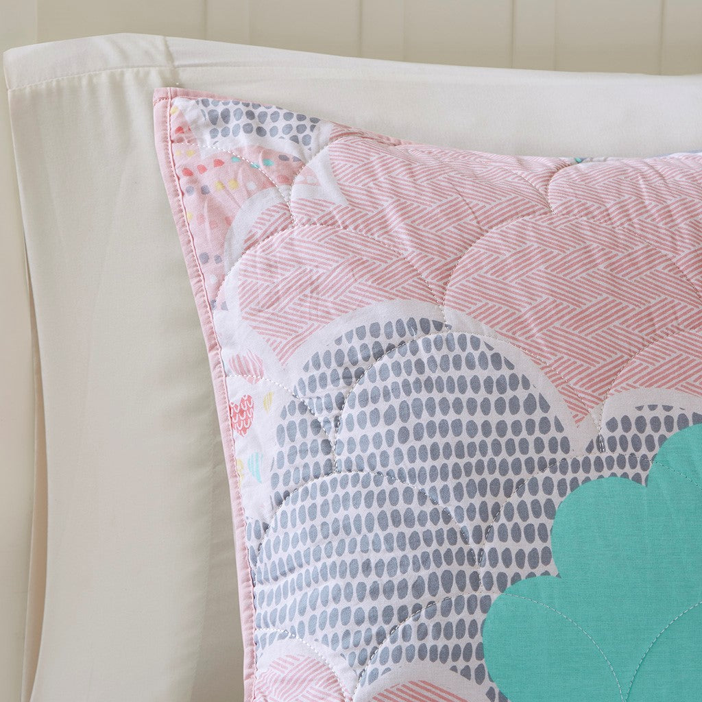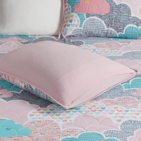 Cloud Reversible Cotton Quilt Set with Throw Pillows - Pink - Twin Size