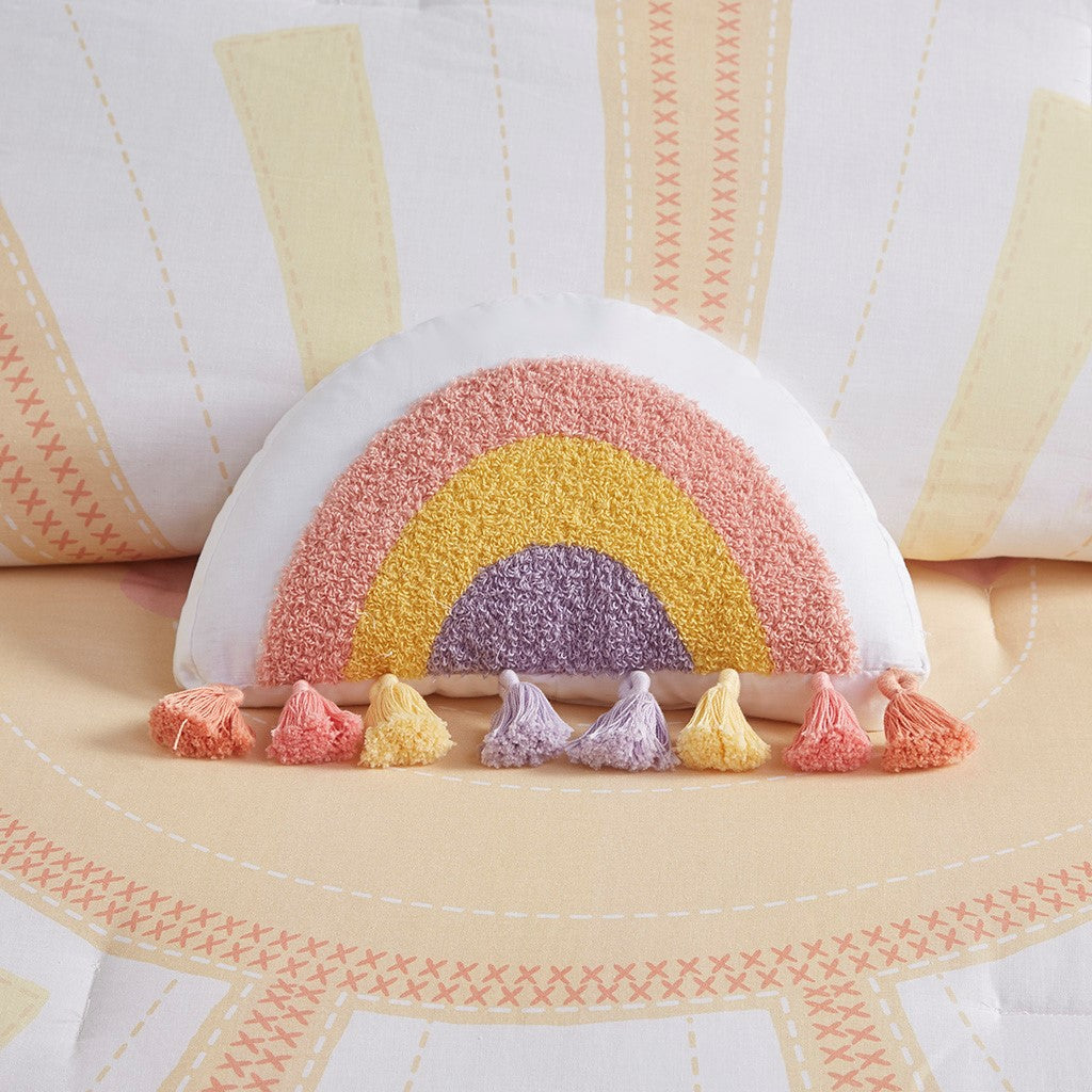 - Set includes comforter, 2 shams, and 1 rainbow shaped pillow