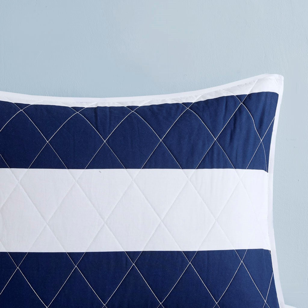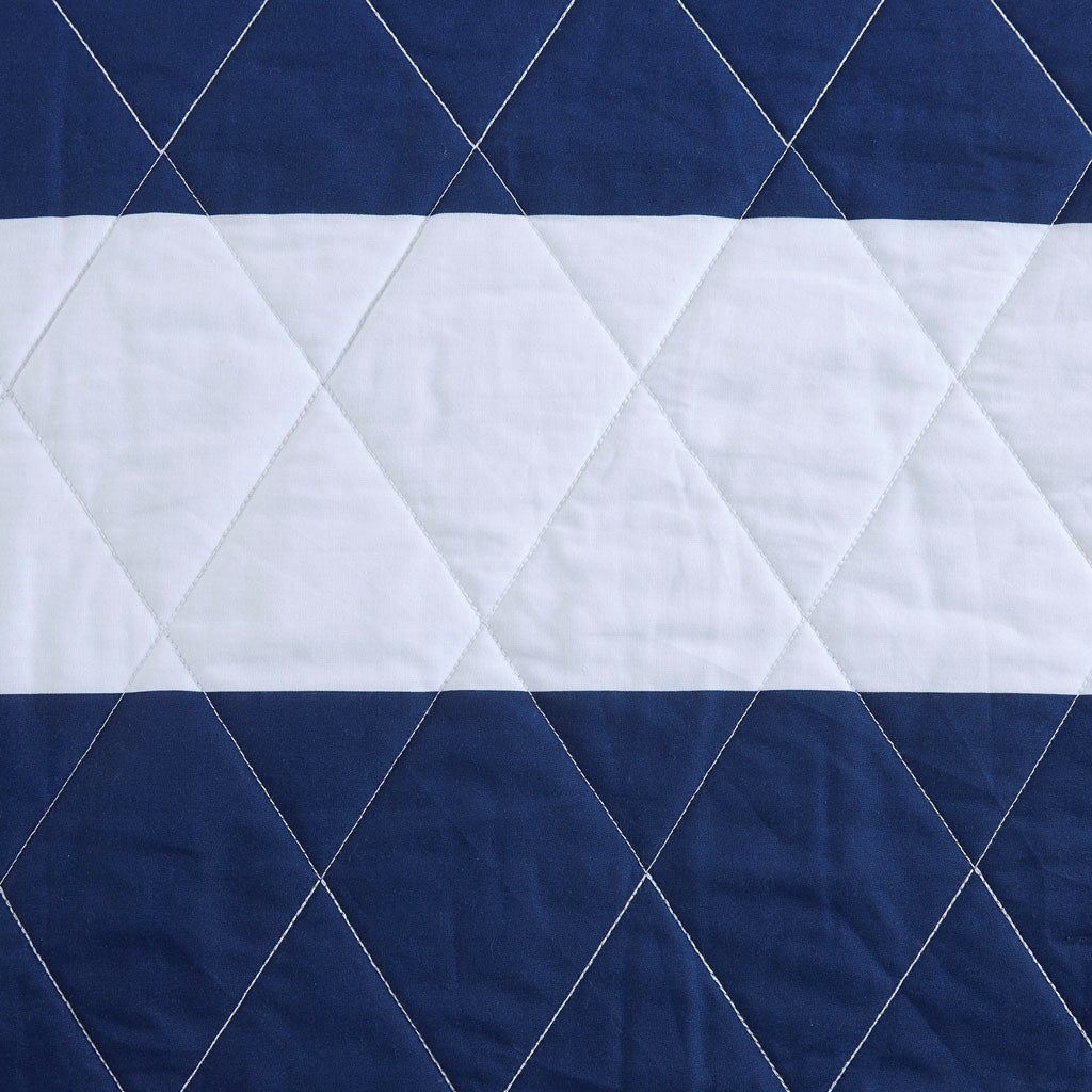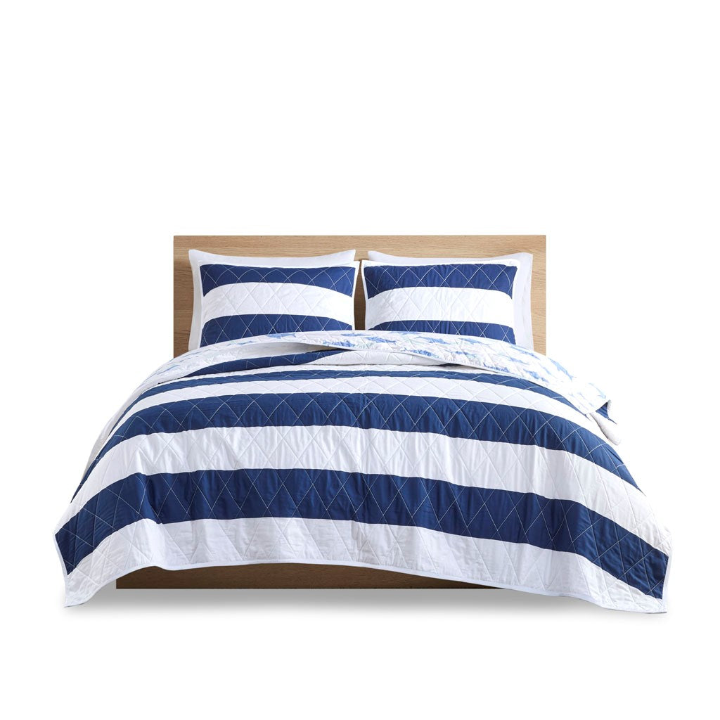 Sammie Cotton Cabana Stripe Reversible Quilt Set with Shark Reverse - Navy - Twin Size
