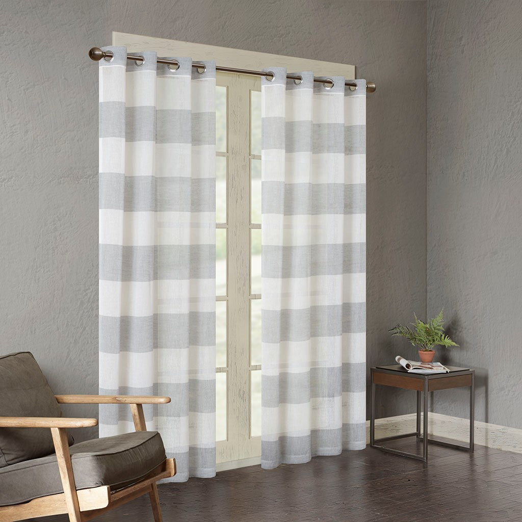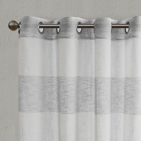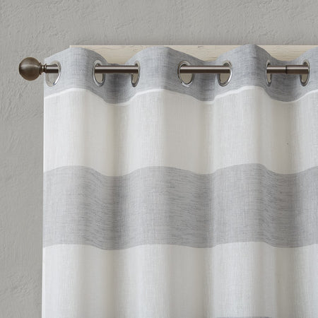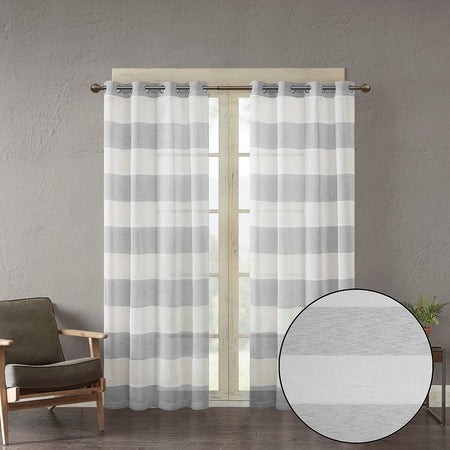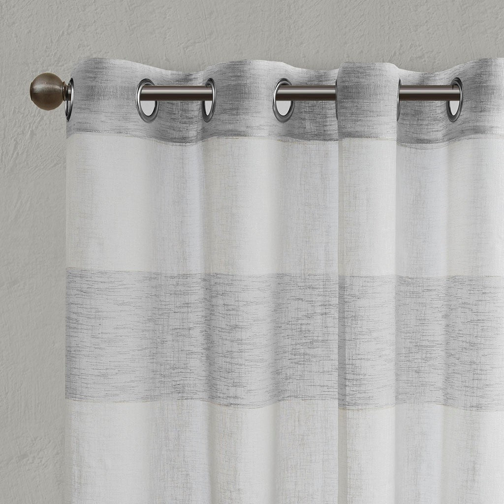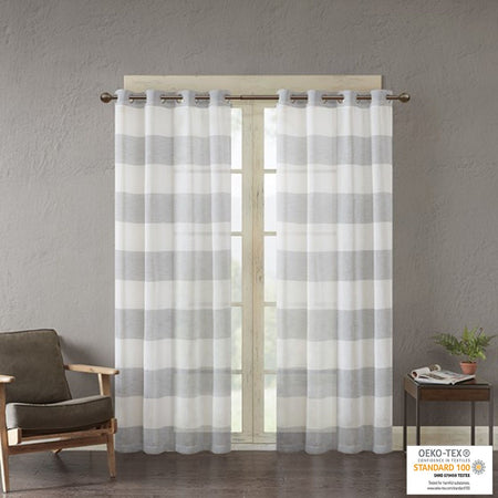 Brighten up your room with the Urban Habitat Mason window panel. This yard dyed curtain features wide stripes in a cool grey and white for a fresh and modern look. The base cloth is loosely woven for a beautiful textured sheer, softly filtering the perfect amount of light into any room. This window panel is also OEKO-TEX certified, meaning it does not contain any harmful substances or chemicals, ensuring quality comfort and wellness. Panel is finished with grommet top detailing, fits up to 1.25" diameter rod.